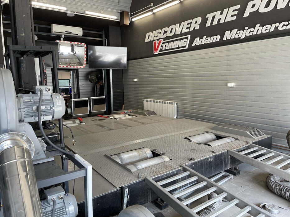 We offer a used 4x4 load dynamometer with axis synchronization, produced by V-Tech.